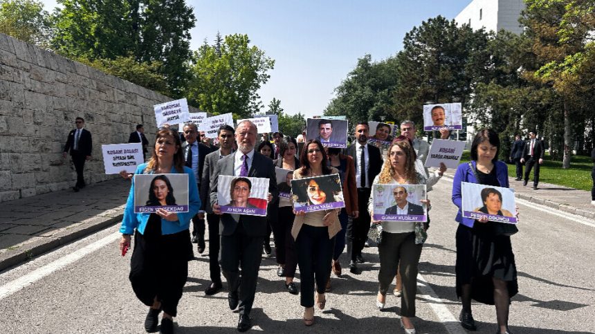 Serokwekîlên Koma DEM Partiyê Gulistan Kiliç Koçyîgît û Sezaî Temellî û parlamenterên DEM Partiyê bi armanca nerazîbûn nîşanî biryarên li ser Doza Kobanê ku hat dayîn, bidin li ber deriyê Çapemeniyê yê Meclisê daxuyanî dan û paşê heta Wezareta Dadê meş li dar xistin. Parlamenter di meşê de dowîzên “Kobanê rûmeta me ye” û “Doza Kobanê doza kumpasa siyasî ye” û wêneyên siyasetmedarên hatin cezakirin hildan.