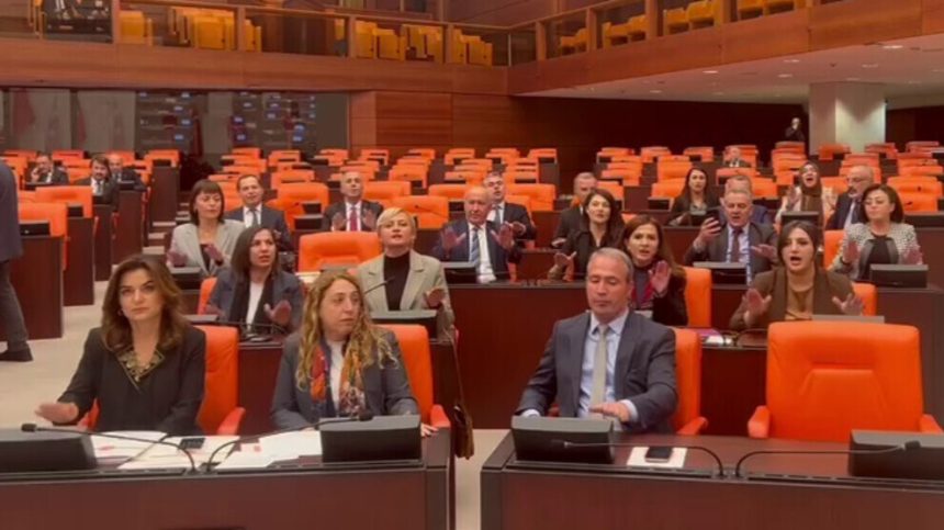 Li ser protestoyê, Gulîzar Bîçer Karaca ya CHP’î 10 deqeyan navber da rûniştinê. Piştî navberê jî protesto domiya û li ser vê yekê dîsa navber hate dayin.