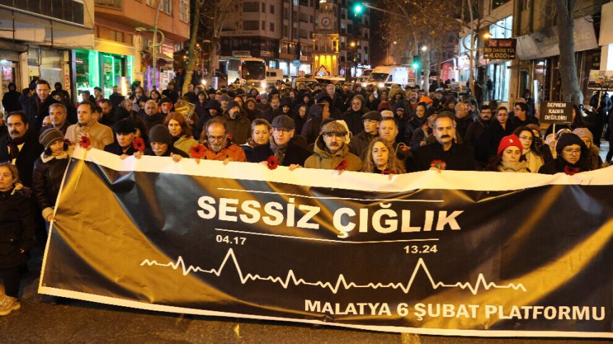 Platforma 6’ê Sibatê ya Meletiyê ji bo kesên di erdhejê de jiyana xwe ji dest dane meşek lidarxist û daxuyanî da. Bi hezaran kes tevlî meşê bûn. Parlametnera DEM Partiyê Salîha Aydenîz, Sevîlay Çelenk û nûnerên rêxistinên demokratîk tevlî meşê bûn. Di meşê de pankarta ‘Qêrîna bêdeng’ hat vekirin.