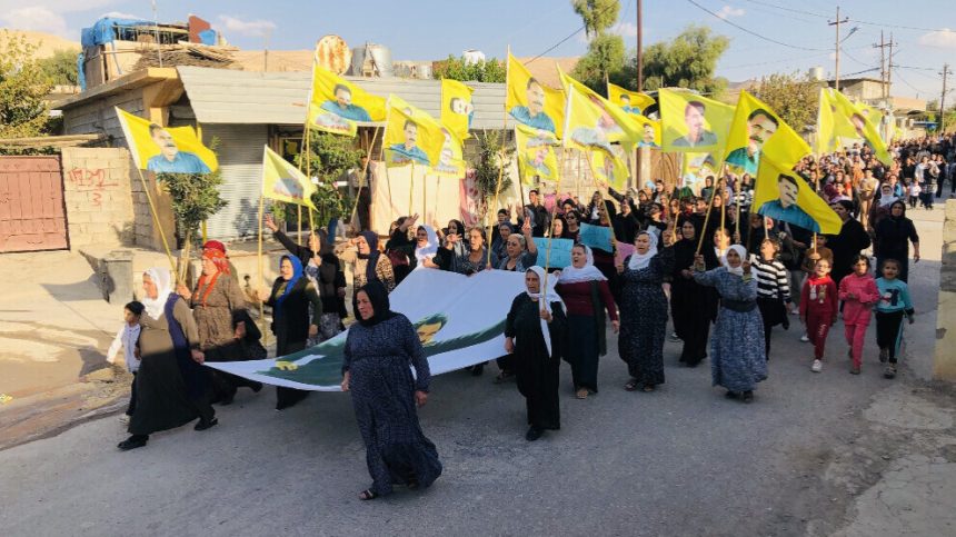 Meş bi dirûşmeyên ‘Bijî Serok Apo’, ‘Bijî Berxwedana Rojava’ û ‘Bijî Berxwedana Îmralî’ bi dawî bû.