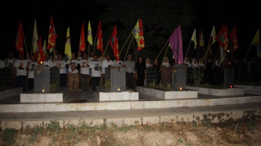Piştî girse gihişt ser goristanê mûm hatin pêxistin û deqeyek rêz ji bo tevahî Şehîdên Tevgera Azadiya Kurdistanê hate girtin. Piştre li ser navê malbatên şehîdan yên wargehê Mehmûd Zêwkî axivî.
