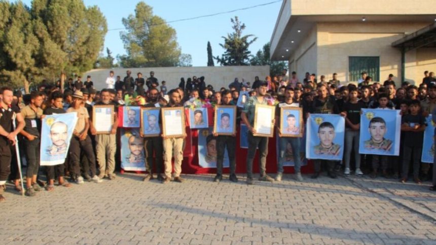 Şervanên Meclîsa Leşkerî ya Minbicê Cuma Serxan, Ebdulreûf El Hemadî û Hesen El Îbrahîm ku dema li ser erka xwe bûn şehîd bûn, bi merasîmekê hatin veşartin.