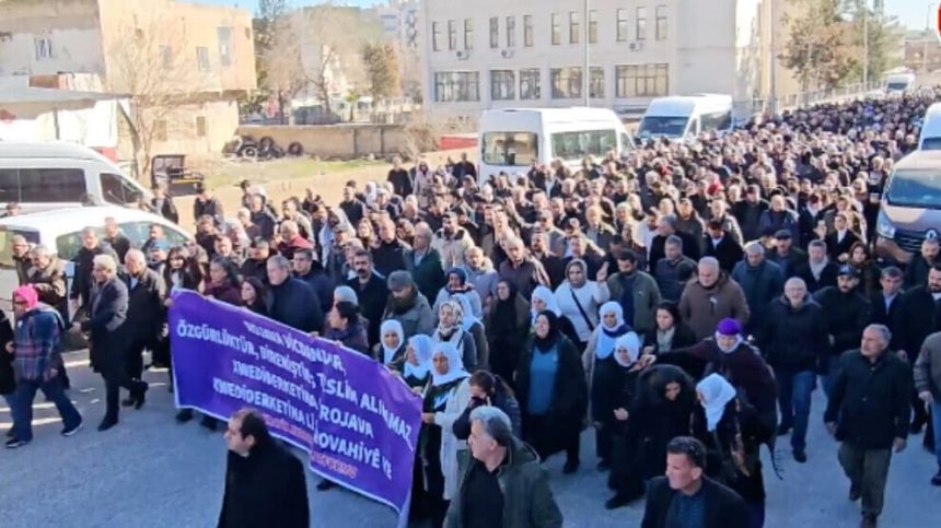 Di demekê de ku li navçeya Nisêbînê ya bajarê Mêrdînê nobedariya li dijî êrîşên li ser Rojavayê Kurdistanê berdewam dike, serê sibê bi hezaran kes li ber goristana Hecace ya li ser sînorê Qamîşloyê kom bûn. Girseya ku di nav wan de Hevserokê Partiya Wekhevî û Demokrasiyê ya Gelan (DEM Partî) Tuncer Bakırhan û Hevseroka Partiya Herêmên Demokratîk (DBP) Çigdem Kiliçgun Uçar jî hebûn, bi qîrîna dirûşmeyên wekî “Rojava Rojhilat e, Kurdistan yek welat e”, “Bijî berxwedana Rojava” û “Bijî berxwedana gelê Kurd” meşiyan. Di tevahiya meşê de, girseyê gelek caran stranên hevgirtinê bi gelê Rojava re digotin û meş di kolanên Nisêbînê de berdewam kir û gihîşt Kolana navçeya Midyatê.