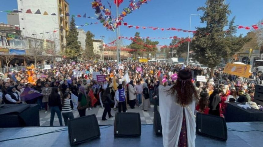 Bi hezaran jin beşdarî mîtînga li Qada Cumhuriyetê ku ji aliyê Tevgera Jinên Azad (TJA) ve hate organîzekirin bûn. Jinên ku bi cil û bergên xwe yên gelêrî qadê tije kirin, bê navber dirûşmeya “Jin Jiyan Azadî”, “Bijî berxwedana gelê Kurd” û “Bijî Serok Apo” berzkirin.