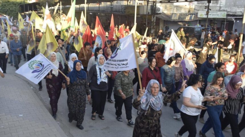 Bi sedan şêniyên bajar û herêmên Bakur û Rojhilatê Sûriyeyê êrîşên dewleta Tirk a dagirker ên li dijî herêmê bi meşên girseyî şermezar kirin.
