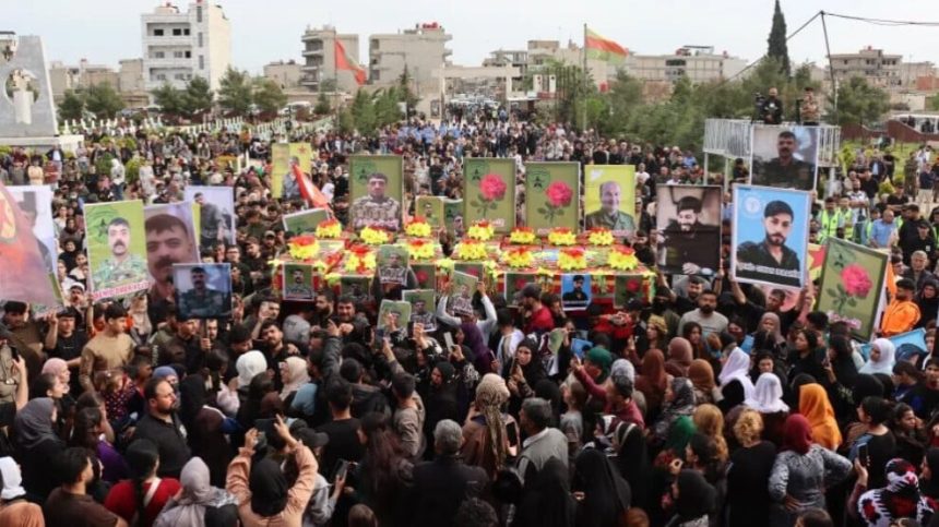 Bi hezaran şêniyên Qamiloyê îro cenazeyên endamê Hêzên Ewlekariya Hundirîn Ciwan Îbrahîm û şervanên Hêzên Sûriya Demokratîk Can, Xerîb, Mihemed, Hadî, Munzir El Izo (Îsam Qamişlo), û Umer Xelîl ku di 18 û 21ê Çileyê de li deverên cuda şehîd bûn li Şehîdgeha Delîl Saroxan veşartin. Her wiha ji bo şehîd Silêman Mihemed (Mihemed) jî marasîma xiyabî hat lidarxistin.