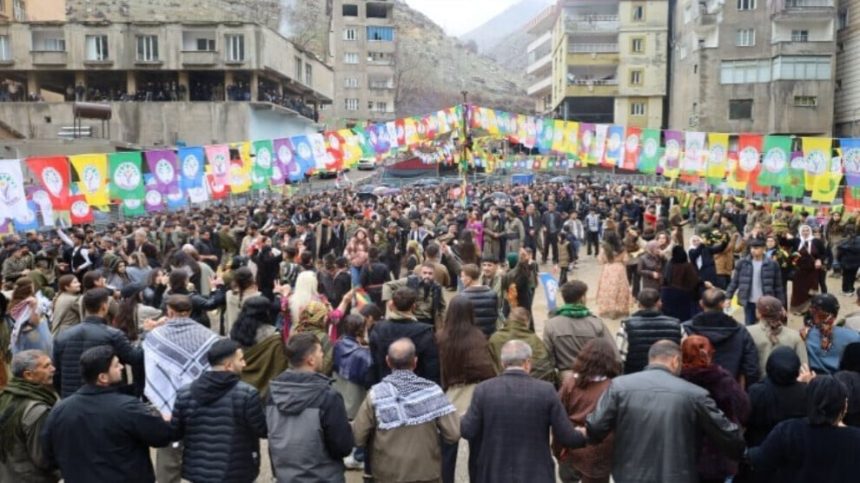 Piştî deqeyeke rêzgirtinê pîrozbahiyê bi xwendina peyama Rêber Apo destpê kir. Di pîrozbahiyê de tim û tim dirûşmên “Bijî Serok Apo” û “Jin, Jiyan, Azadî” hatin qîrîn. Hevseroka DEM Partiyê ya Bajarê Şirnexê Taybet Bîlgî diyar kir ku Newroz nîşaneya berxwedana dîrokî ye.