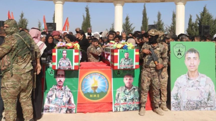 Bi sedan xelkê kantona Reqa, saziyên sivîl û leşkerî, Kombûna Jinan a Zenûbiya û Partiya Sûriya Pêşerojê li goristana şehîdan a bajarokê Hikumiyê kom bûn û cenazeyên her du şehîd Hêzên Komandos ên Hêzên Sûriya Demokratîk (QSD) veşartin.