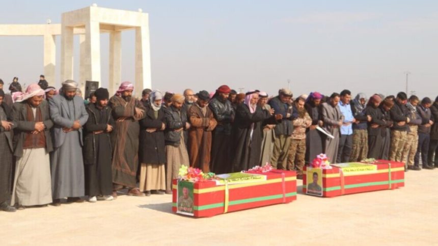 Bi sedan şêniyên kantona Reqayê cenazeyên şervanên QSDˈê Mihemed Emîn El Xedban û Eymen Ewad El Ayîd bi merasîmekê li Pakrewangeha Şehîdan a li bajarê Keramê yê li rojhilatê Reqayê veşartin.