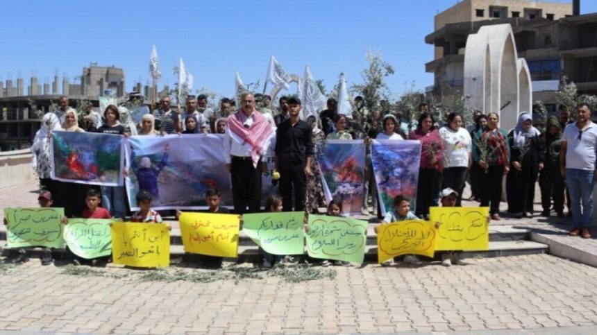 Endamê kombendê Selah Ebdo daxuyanî xwend û diyar kir ku dewleta Tirk a dagirker ji dema dagirkirina Efrînê ve sûcên revandin, windakirina bi darê zorê, desteserkirina milkan, wêrankirina cihên dîrokî û şewitandina daran didomîne.