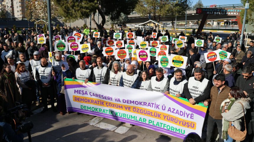 Platforma Saziyên Demokratîk, di çarçoveya kampanyaya “Ji Abdullah Ocalan re azadî, ji pirsgirêka Kurd re çareseriya demokratîk” de duh ji Amedê ber bi Enqereyê ve “Meşa Çareseriya Demokratîk û Azadiyê” da destpêkirin. Meşvanên ku Hevserokên Giştî yên Partiya Herêmên Demokratîk (DBP) Çîgdem Kiliçgun Uçar û Keskîn Bayindir jî di nav de ne, îro li Rihayê bûn. Meşvan, ji ewil derbasî navçeya Sêweregê bûn. Li vir ji hêla girseyeke qelebalix ve hatin pêşwazîkirin û piştre derbasî navçeya Curnê Reş bûn. Piştre jî derbasî navenda Rihayê bûn û li Parka Alî Şellî hatin gel hev.