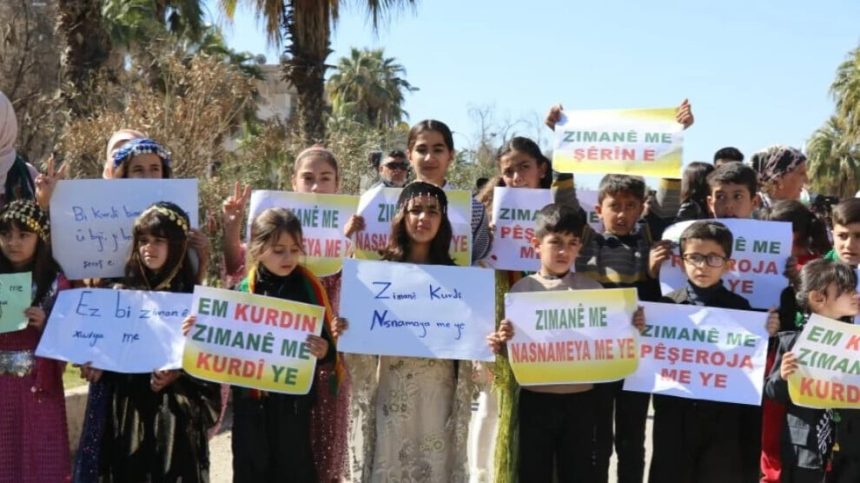 Desteya Perwerde û Fêrkirinê ya Herêma Cizîrê bi boneya 21’ê Sibatê Roja Zimanê Dayikê ya Cîhanê bi dirûşma “Perwerdeya bi zimanê dayikê mafê me yê rewa û bingehîn e” li bajarê Qamişloyê meşek lidarxist.