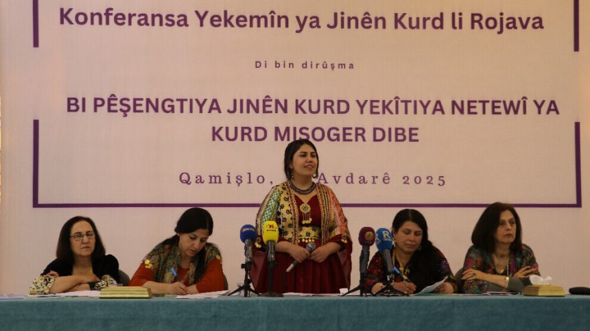 Konfederansa Jinên Kurd a Yekemîn a Rojava di 23’ê Adarê de li Parka Azadî ya Qamişloyê bi dirûşma ‘Yekîtiya Neteweyî ya Kurd bi pêşengiya jinên Kurd pêk tê’ hate lidarxistin. 300 delege beşdarî konferansê bûn. Dîwan ji Bedevka Kongra Star Rîhan Loqo, Hevseroka Partiya Yekîtiya Demokratîk Perwîn Yûsif, Endama Meclîsa Jinê ya Bakur û Rojhilatê Sûriyeyê Stêra Qasim, aktîvîst Sîham Emoka û Seroka Tevgera Paşerojê ya Kurdistanê Narîn Metîni pêk hat.
