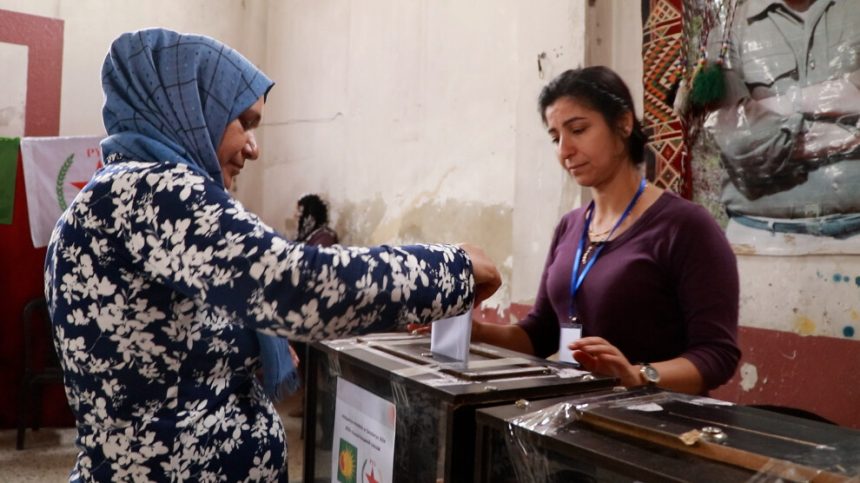 Li kantona Efrîn û Şehbayê ji bo diyarkirina namzetên Kongra Star û PYD’ê hilbijartin hat lidarxistin. Li kantona Efrîn û Şehbayê di 27’ê Nêsanê de 5 namzetên jin bi hilbijrtinê hatibûn diyarkirin û îro jî hilbijartinên giştî hatin lidarxistin. Sindoqên dengdayînê li seraserî gund û navçeyan katona Efrîn û Şehbayê hatin belav kirin û dengdayîn saet di 09.00’ê sibê de dest pê kir. Gel ji bo îradeya xwe diyar bike bi awayeke girseyî berê xwe dan navendên hilbijartinan û dengê xwe bi kar anîn.