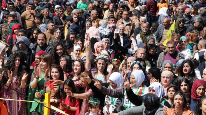 Şahiya Newrozê bi vêxistina agirê Newrozê dest pê kir. Şêniyên Efrîn û Şehbayê bi dûrişma “Ji Rêber Abdullah Ocalan re azadî, ji pirsgirêkê Kurd re çareserî” Newroza xwe pîroz dikin.