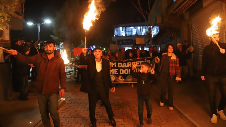 Protestoyên li dijî dagirkirina Şaredariya Bajarê Mezin a Mêrdînê û şaredariyên Êlih û Xelfetiyê didomin. Bi bangawaziya DEM Partiyê gel li Şemrexê kom bû û meşeke meşaleyî li dar xist.
