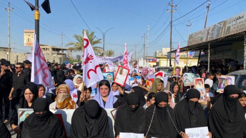 Di meşê de wêneyên qurbaniyan û şehîdên pêşeng yên Êzidiyan hatin rakirin.