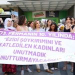 Komek jinên ciwan ji bo şermezarkirina dîl girtin û firotina jinan ji aliyê DAÎŞ’ê ve cilên reş li ber kirin, xwe zincîkirin û wêneyên jinên hatine dîl girtin û qetilkirin rakirin.
