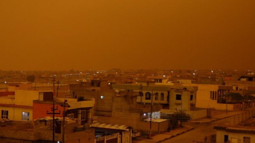 Li Şengalê danê êvarê toz rabû. Ji ber tozê kolanên Şengalê veguherîn rengê sor. Her wiha mesafeya dîtinê jî gelekî kêm bû.