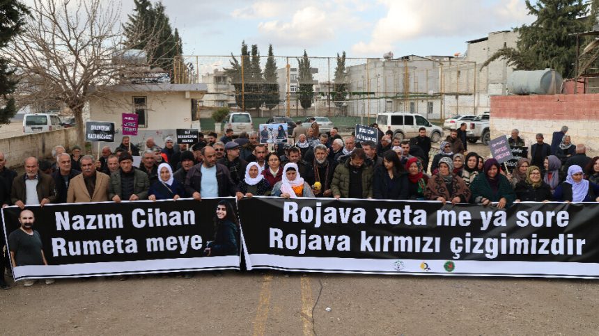 Welatiyan pankartên “Rojava xeta me ya sor e”, “Nazim û Cîhan rûmeta me ne” û dovîzên “Em ê bi berxwedanê bi ser kevin”, “Dewlet jinan dikuje” û “Em bi hev re bi ser ketin dê bi hev re biparêzin” hilgirtin. Di çalakiyê de daxuyanî hate dayin.