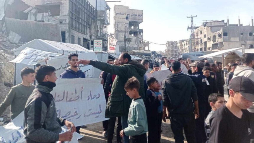 Li gorî nûçeya AFP’ê, i sedan kes ku piraniya wan mêr bûn tevlî xwepêşandanê bûn û dirûşmên ‘Hamas derkeve’, ‘Hamas terorîst’ qîriyan.