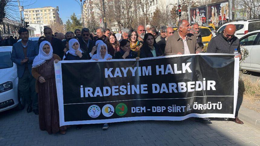 Hevşaredarên Sêrtê Sofya Alagaş û Mehmet Kaysî ji peywirê hatin girtin û li şûna wan waliyê Sêrtê Kemal Kizilkaya weke qeyûm hate tayînkirin. Çalakiya nobetê ya li dijî tayînkirina qeyûm hatiye destpêkirin didome. Hevşeredarên ku li şûna wan qeyûm hatiye tayinkirin, Sofya Alagaş, Mehmet Kaysi endamên meclîsê yên şeredariyê, parlamenterên DEM Partiyê û rêveberên sazî û rêxistinan, tevlî meşê bûn.