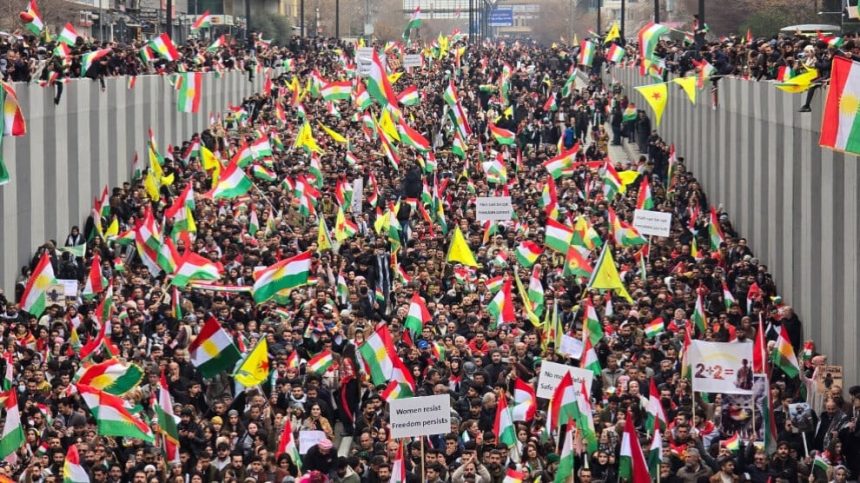Xwepêşandana bi sed hezarana ku ji saetên nîvro ve ji rewşenbîr, hunermend, mamosteyên olî, jin, ciwan, pîr û zarok têde cihê xwe girtin ya li Silêmaniyê hatibû destpêkirin, berî çend kêliyan bi dirûşmên dilsoziya bi Rojava re dawî bû.