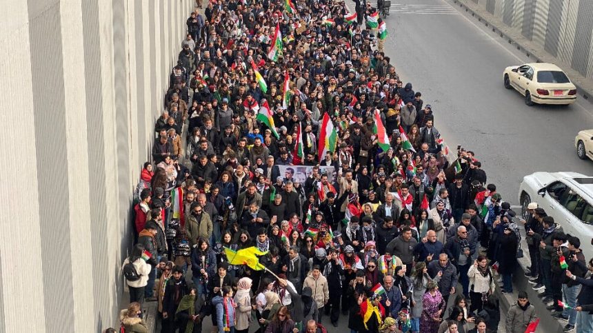 Bi hezaran kesan bi yek dengî piştevaniya xwe ji gelê Kurd ê Rojavayê Kurdistanê dubare kirin. Xwepêşanderan daxwaz û banga rawestandina êriş û dagirkeriya li ser Rojavayê Kurdistanê kirin.