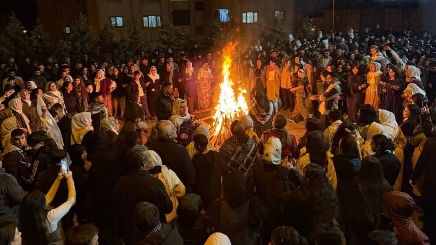Jinan bi daxwaza aştî û azadiyê meşaleyên xwe danîn ser daran û agirê Newrozê vêxistin. Girseya ku li dora agir bi stranên kurdî dest bi govendê kir, pîrozbahiyên xwe heta demeke dirêj berdewam kirin.