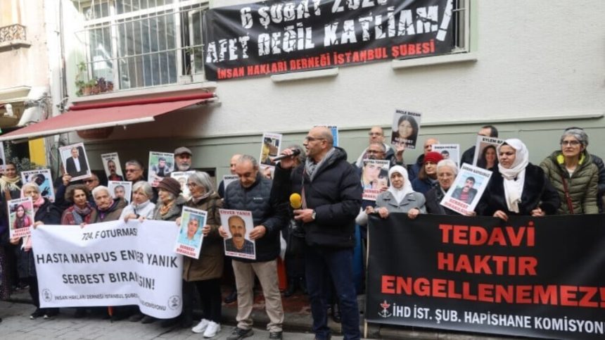 Komîsyona Girtîgehan a Şaxa Stenbolê ya Komeleya Mafên Mirovan (ÎHD) çalakiya xwe ya 724’an a “Rûniştina F” lidar xist. Di çalakiyê de bê navber dirûşmeyên “Bila girtiyên nexweş bên berdan” û “Tecrîd dikuje, piştevanî dide jiyankirin” hatin berzkirin.