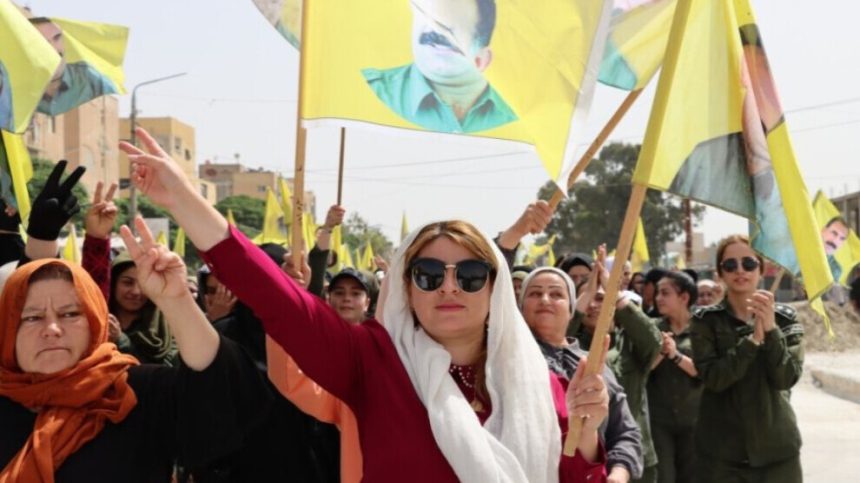 Şêniyan ku ji taxa Ewel (Yemen) dest bi meşê kir, pankartên bi nivîsên “Azadiya fîzîkî ya Rêber Apo mîsogeriya aştî û demokasiya gelan e” vekirin û wêneyên Rêber Apo hildan.
