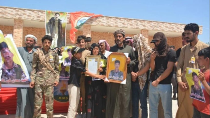 Bi sedan şêniyên bajarên Girkê Legê, Cîlaxa û Til Koçerê îro cenazeyê şervanê QSD’ê Amed Qamişlo (Saadî Xeyrallah Ellawî) ku di 6’ê Tebaxa 2025’an de encama êrîşeke çeteyên DAÎŞ’ê li Dêrazorê şehîd bû, li mezargeha Şehîd Iqeb El Eswed ya li Til Koçerê spartin axê.