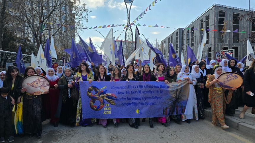 Piştî deqeyek rêzgirtinê Hevseroka DEM Partiyê ya Bajêr Gulşen Kurt axivî û got, “Banga Rêberê Gelê Kurd Abdullah Ocalan Apo ji bo me hemûyan e. Em li dijî polîtîkayên qirêj, têkoşîneke mezin dimeşînin. Heta jin azad nebe, civak azad nabe.”