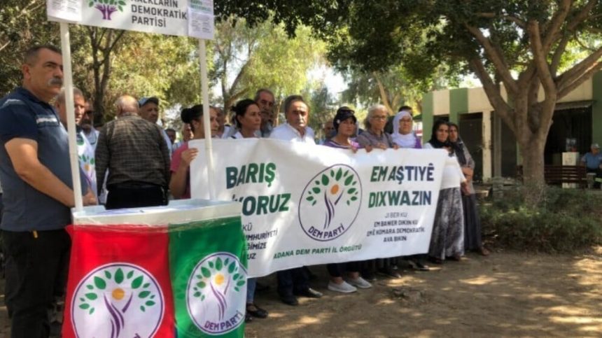 Di çalakiyê de pankartên bi zimanên Tirkî û Kurdî hatin hilgirtin û dirûşmeyên “Bijî aştî” û “Em aştiyê dixwazin” hatin berzkirin. Hevserokê DEM Partiyê yê Edeneyê Seyfettîn Aydemîr di daxuyaniyê de axivî û got, “Em aştiyê dixwazin ji ber ku em bawer dikin ku em ê Komara Demokratîk ava bikin.”