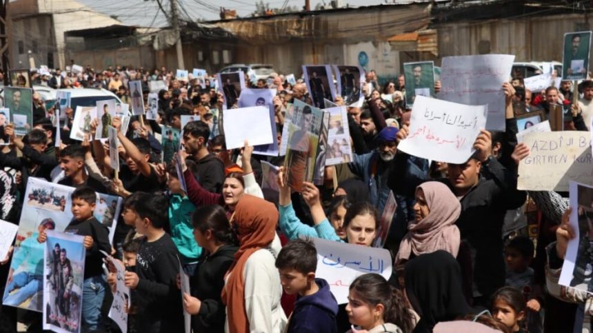 Malbatên sivîl û şervanên QSD`ê ku meha Çileyê ji aliyê hikumeta demkî ya Sûriyeyê ve dîl hatin girtin, derketin xwepêşandanê. Malbatên dîlgirtiyan li pêşiya Stadyûma Şehîdên 12`ê Adarê kom bûn û dest bi xwepêşandanê kir.
