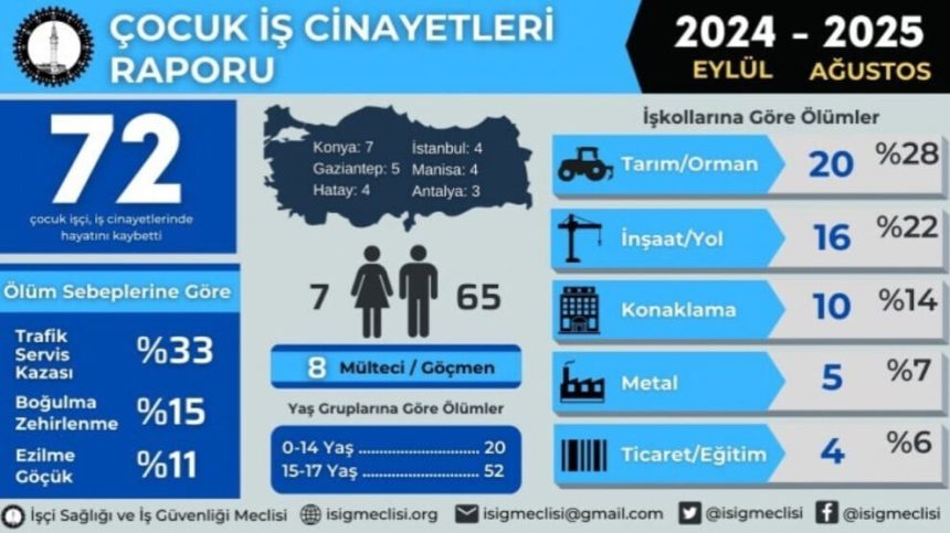Di raporê de hate diyarkirin ku 20 zarokan di sektora çandiniyê de, 19’an di sektora pîşesaziyê de, 17’an di sektora înşaetê de û 16’an jî di sektora xizmetê de jiyana xwe ji dest dane û hate destnîşankirin ku li gorî salên borî mirin li navendên bajaran zêdetir pêk tên.