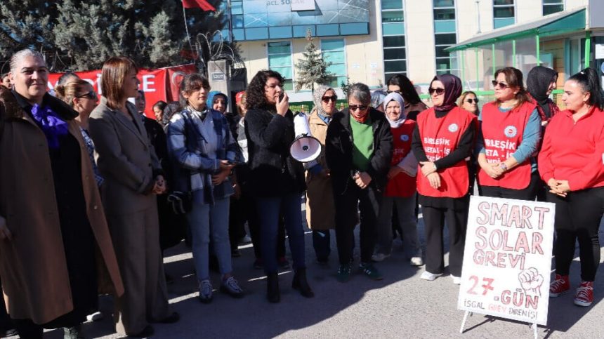 Meclisa Jinan a Partiya Wekhevî û Demokrasiya Gelan (DEM Partî) serdana karkerên Smart Solar kir ku 26 roj in li navçeya Gebze ya Kocaeli di berxwedanê de ne. Piştî serdanê, li Dilovasiyê li ber deriyê kargeha Ravive Kozmetîkê, ku di şewata derketî de 6 kes, 3 jê zarok, jiyana xwe ji dest dabûn, daxuyaniya çapemeniyê hate dayîn. Berdevka Meclisa Jinan a DEM Partiyê Halîde Turkoglu, Parlamentera Stenbolê Kezban Konukçu û gelek jin beşdarî daxuyaniyê bûn.
