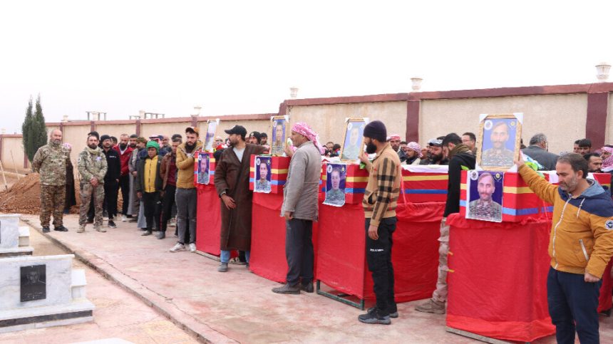 Piştre wesîqeyên şehadetê yên her çar şehîdan hatin xwendin û radestî malbatên wan hatin kirin. Hevreyên şehîdan derbestên şehîdan hilgirtin ser milê xwe û bi dirûşmên dilsoziya bi şehîdan re li Goristana Şehîdên Suryan-Asur a li bajarê Hesekê spartin axê.