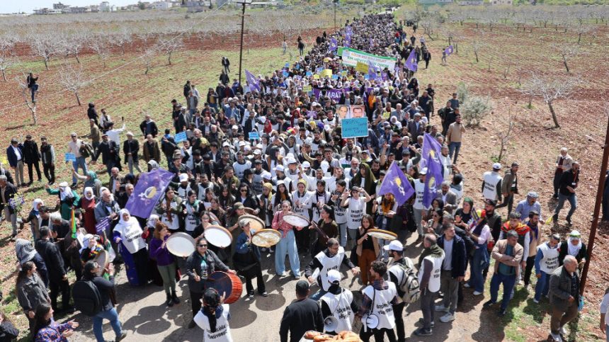 Parlamenterên Partiya Herêman a Demokratîk (DBP), Partiya Demokrasî û Wekheviyê ya Gelan (DEM Partî), Hevşaredarên DEM Partiyê, endmên Meclîsa Dayikên Aştiyê û meşvanên Amarayê tevlî meşê bûn.