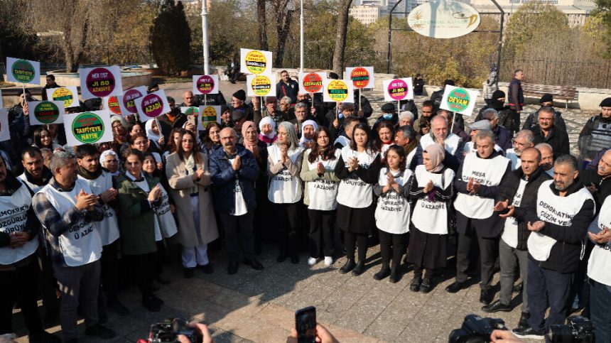 Hevseroka Partiya Herêman a Demokratîk (DBP) Çîgdem Kiliçgun Ûçar, nûnerên partiyên siyasî û rêxistinên civakî yên sivîl jî di nav de meşvan li Parka Yeşîl Sû li hev kom bûn.