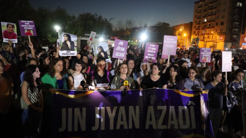 Platforma Jinan a Dîcle ya Amedê (DAKAP) û Tora Têkoşîna li Dijî Tundiyê ya Amedê bi boneya duyemîn salvegera qetilkirina Jîna Emînî, ji ber Edliyeya Amedê heta Qada Şêx Seîd meşiyan. Nûnerên gelek sazî, partiyên siyasî û rêxistinên sivîl ên bajêr, Dayikên Aştiyê, parlamenterê Partiya Wekhevî û Demokrasiyê ya Gelan (DEM Partî) Serhat Eren û gelek jin beşdarî meşê bûn.