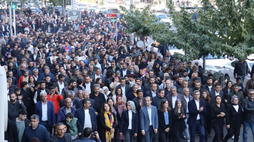 Li Êlihê berxwedana li dijî qeyûman didome. Hevserokên Giştî yên Partiya Herêmên Demokratîk (DBP) Çîgdem Kiliçgun Uçar û Keskîn Bayindir, endamên Platforma Jinan a Edeneyê, hevşaredarên navend û navçeyên Amedê, hevşaredarên Dêrsimê, aktîvîstên Tevgera Jinên Azad (TJA), endamên Meclisa Dayikên Aştiyê, parlamenterên DEM Partiyê, Hevşaredarên Êlihê Gulistan Sonuk û Yeşîl Işik û bi sedan kes tev li bûn. Girseya ku li Parka Yilmaz Guney hate gel hev, ber bi Xaçerêya Basinê ve dest bi meşê kir.