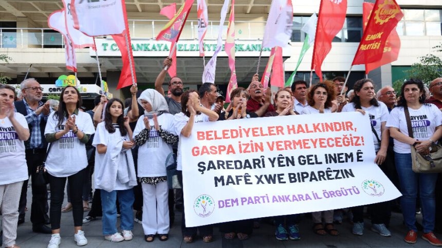 Piştre parlamentere DEM Partiyê yê Wanê Mahmût Dîndar axivî û ev tişt anî ziman: “Desthilata AKP-MHP’ê li Kurdistanê darbeyekî mezin xwar û vê yekê ranagire. Hezar û yek fêlbazî di hilbijartina 31’ê Adarê de kirin lê belê winda kirin. Niha jî bi siyaseta desteserkirinê ji me re dibêjin ku em vîna we nas nakin. Qeyûm erdnîgariya Kurdistanê talan kirin. Em îro jî ji Enqereyê dengê xwe bilind dikin. Em wek mirovên edalet, maf, wekheviyê diparêzin dê rê nedin desteserkirinê. Em van qeyûman nas nakin û dê heya ev bêhiqûqî paş de vedikişe têkoşîna xwe bidomînin.”