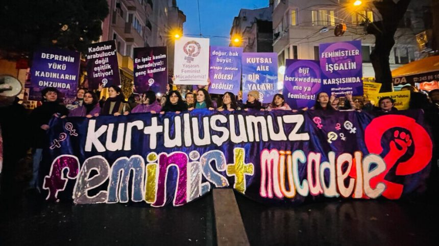 Platforma Meşa Şevê ya Femînîst a 22’emîn bi boneya 8’ê Adarê Roja Jinên Kedkar ên Cîhanê li Taksîm a Beyoglu, Meşa Şevê ya Femînîst li dar xist. Jinan di meşê de peyama, “Me hêza berxwedanê di piştevaniyê de dît” dan.