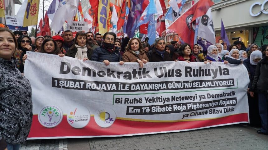 Li Stenbolê, bi wesîleya 1’ê Sibatê Roja Piştevaniya Rojava ya Cîhanê, ji aliyê Tevgera Jinên Azad (TJA), Partiya Wekhevî û Demokrasiyê ya Gelan (DEM Partî) û Kongreya Demokratîk a Gelan (HDK), ji Kolana Halitaga ya Kadikoya Stenbolê heta Kadikoy Bogayê meşek li dar xistin. Partiyên siyasî, saziyên civaka sivîl û bi hezaran kes tevlî meşê bûn. Di daxuyaniya piştî meşê de pankartên, “Civaka exlaqî û polîtîk wê çeteyan têk bibe”, “Bijî berxwedana Rojava”, “Şoreşa Rojava pek tê bê hêza ciwanan” û “Gelê Kurd yek ê Rojava rûmete” hatin vekirin.