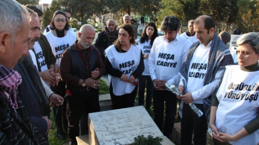 Parlamenterê DEM Partiyê yê Mêrsînê Alî Bozan, bi lêv kir ku bi 75 kesan dest bi meşa azadiyê kirin û got: “Her cihê ku em çûnê em zêdetir û mezintir bûn. Weke 75 meşvanên azadiyê ji bo herkesê meşiyan. Di roja 11’emîn a meşê de em li Wêranşar a Rihayê li ser gora heval Eşref Anyik in. Di şevekê de agirê çaran vêxistin. Îro ew agirê wan pêxistiye berdewam dike. Dema wan laşê xwe da ber agir, peyamek li pey xwe hiştibû û gotibûn ku ‘Em hevrêyên heval Mazlûm in, çalakiya me berdewama çalakiya wan e’. Em jî hevrêyên çaran û Mazlûman e. Agirê wan vêxistî îro bi çalakiya greva birçîbûnê ya girtiyên siyasî yên di zindanê de, bi Nobeta Edaletê ya dayikan didome. Em jî dibêjin ku ew agirê wan vêxistiye heta ku bigihe armanca xwe dê berdewam bike. Heta ku birêz Abdullah Ocalan azad bibe dê berdewam bike.”
