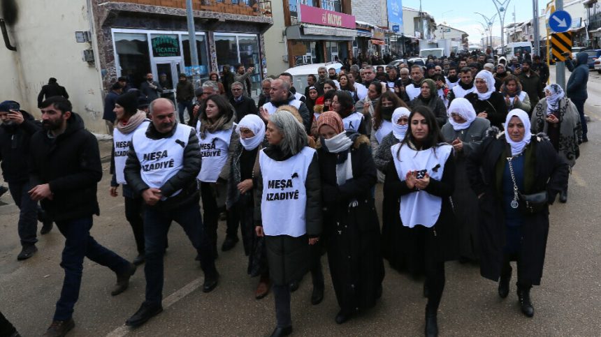 Piştî axaftinan, girseyê dirûşma “Bijî berxwedana Îmraliyê” berz kir. Meşvan û kesên pê re piştre derbasî avahiya partiyê bûn.