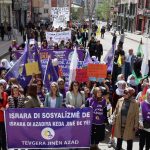 Di tevahiya rojê de li qadê dirûşmên “Jin, jiyan, azadî”, “Maf, hiqûq, edalet”, “Em ê bi berxwedanê bi ser kevin”, “Li dijî faşîzmê mil bidin milên hev” û “Bijî Serok Apo” hatin berzkirin.