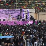Mitîng bi berzkirina dirûşmên bi banga serbestberdana dîlgirtiyan û misogerkirina mafên jinan di destûrê de bi dawî bû.