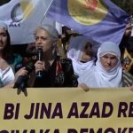 Mîtîng bi dirûşma “Em bi berxwedanê azad bikin, civaka demokratîk dihûnin”, li Bûlvara Newrozê hate lidarxistin û gelek jin beşdar bûn.